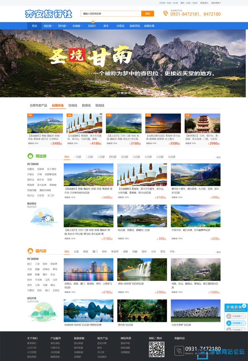 [VIP学员:昆明tomorrow]放出来我仿的旅行社公司网站,这个主题是我第一次学wordpress仿的,当然因为刚刚开始 所以有很多细节的地方肯定是不好的 所以定制为1.0版本 以后学的越来越多会慢慢的改进一个完整版的,安装跟别的主题一样 一共调用了一个插件 就是课程里面说的:wp-thumbnails