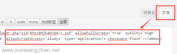 第二步,进入自己网站的后台,发布文章时,在代码模式下将复制的视频代码粘贴文章中;
