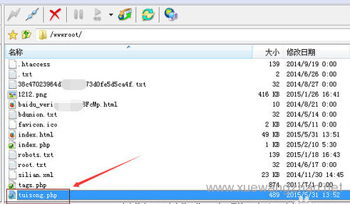 - 把刚刚编辑好的PHP页面通过FTP软件上传到网站的根目录,保存并取名为tuisong.php,然后将tuisong.php上传到网站根目录;