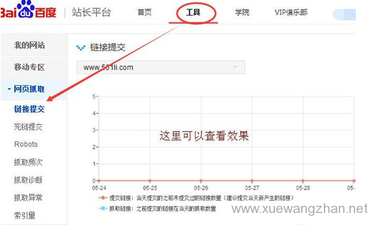 - 提交之后,如果要看效果,提交后有没有被抓取,可以在百度工具里面查看,不过只能到第二天才能看到。