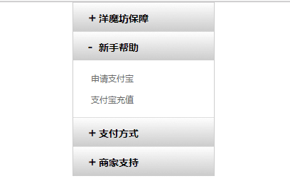 .Collapsing {height: 40px;line-height: 40px;text-indent: 10px;outline: none;font-size: 14px;font-weight: 700;border-top: 1px solid #ddd;background: -webkit-gradient(linear, left top, left bottom, color-stop(0, #FEFEFE), color-stop(1, #CCCCCC));cursor: pointer;}