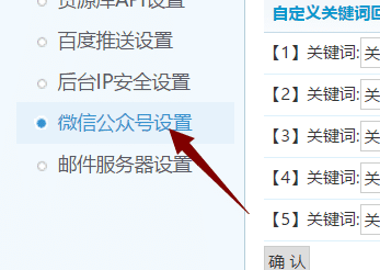 - 在【系统】界面的左侧菜单的下方有一个【微信公众号设置】;