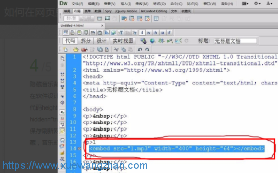 除了使用以上的方法用DWCS6软件来添加音乐之外,还可以直接使用以下的HTML代码来插入音乐。