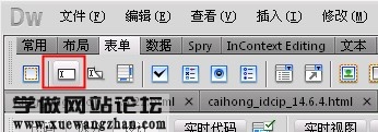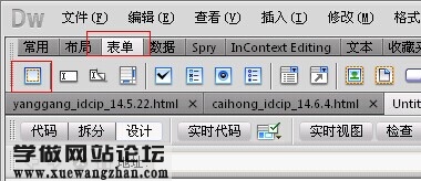 - 点击DW上方的按钮中的表单按钮,可以创一个表单框;