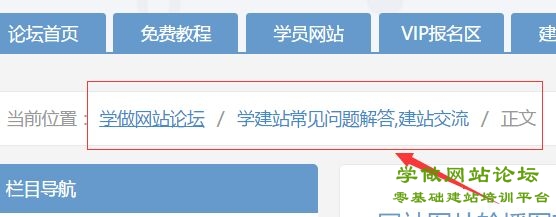 相信很多初学建站的学员对网站菜单导航并不陌生,但对于网站面包屑导航却知之甚少,那么什么是网站面包屑导航呢?就是网站首页之外的主题内容上面的阶梯形导航。如下图: