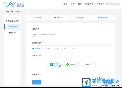 - 进入支付页面,可以选择1天免费期,然后点击“去支付”