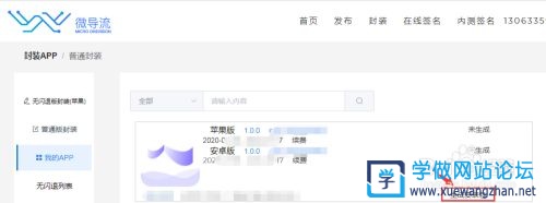 - 支付成功后,就能看到刚刚封装好的苹果app了,点击“生成安装包”,选择苹果,点击“确定”