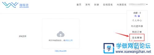 - 支付成功后,点击平台右上方的账号,点击“签名管理”