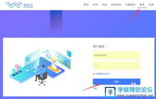- 打开浏览器,进入微导流开发者服务平台,点击顶部导航栏的“登录”,输入自己的账号密码进行登录,如果没有账号,可以用自己的手机号注册一个。