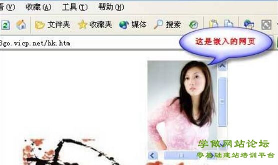 通过这样的代码和相应高度和宽度的修改,就可以实现调用网页小部分甚至一个局部了的作用了,都可以满足我们在学习怎么做网站过程中要求的“页中页”的功能。