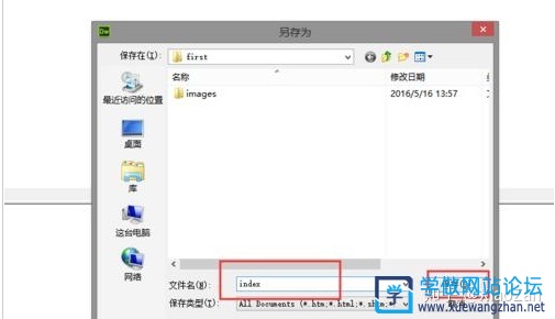 8、选择保存的名称一般情况下网页的首页都叫index,将名称更改后确认即可在浏览器中看到刚才的网站了。