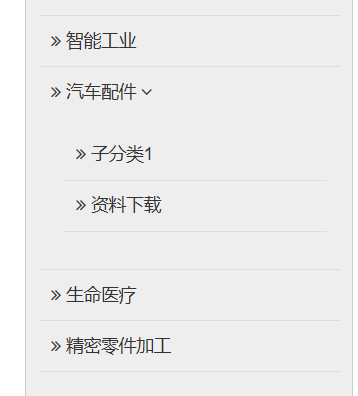在很多企业网站制作中,由于产品分类比较多,在左侧的栏目分类时,就需要使用到二级子菜单和三级子子栏目。为了防止栏目太多造成菜单过长,就需要先将三级子子栏目隐藏,点击二级菜单后,再显示出来。