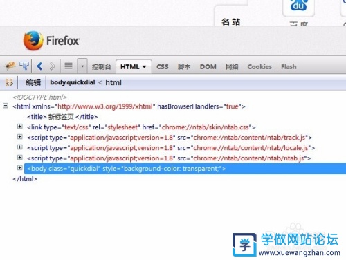 - 打开firebug的插件之后,就可以进行查看的网页的相关的元素的内容信息。