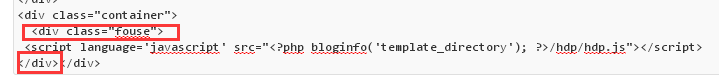 - 我们在class名为container的DIV中加入另一个名字为fouse的DIV,为我们下面去消除SWF文件的边框做准备;