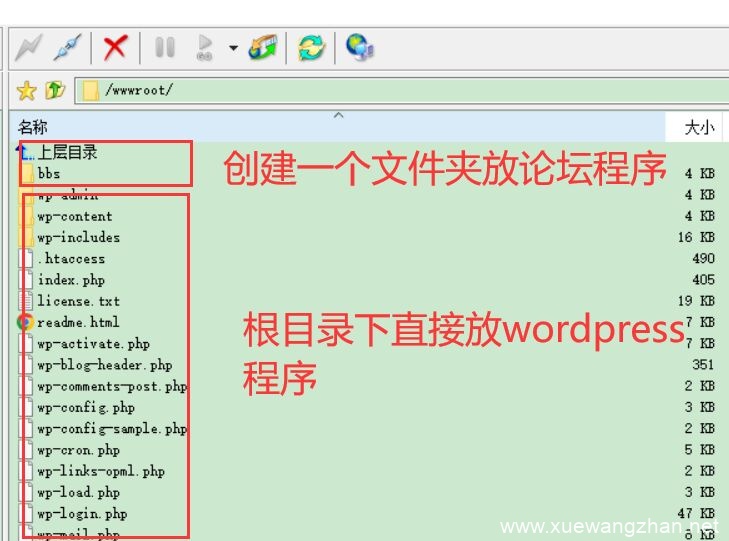 - 首先在自己的网站主机根目录下新建一个文件夹,命名为bbs。(当然可以是其它名称);