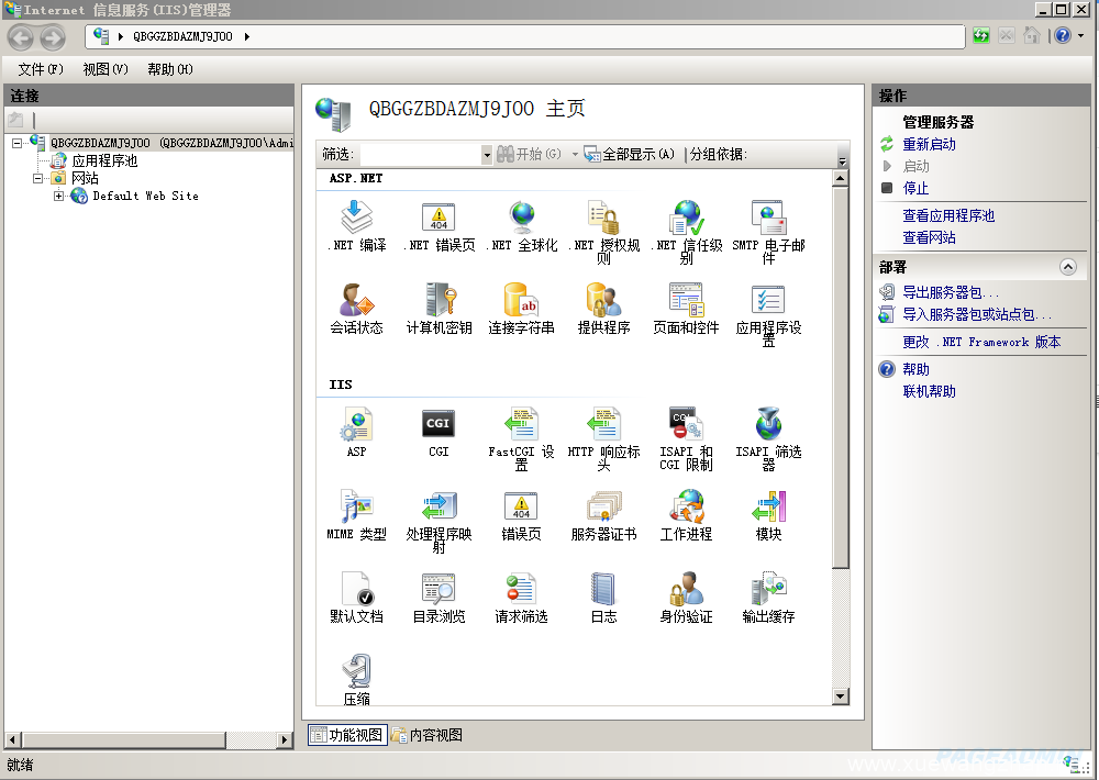 6、点击iis信息管理器后,就进入了iis管理界面,后续站点添加和配置就在这里完成。