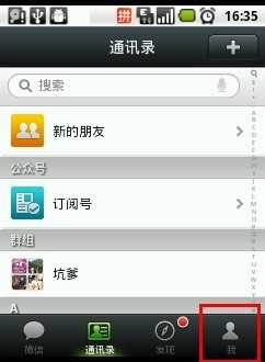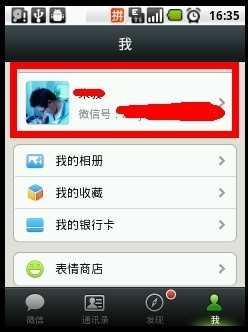 - 我们选择微信里面菜单下的最后一项"我":如图