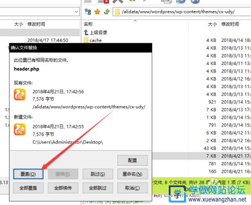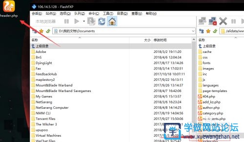 - 首先通过ftp软件,把主题目录下的header.php发送到桌面