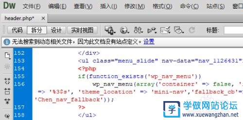 - 用记事本或DW打开header.php,小编这里用的是DW,性质区别一样。