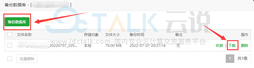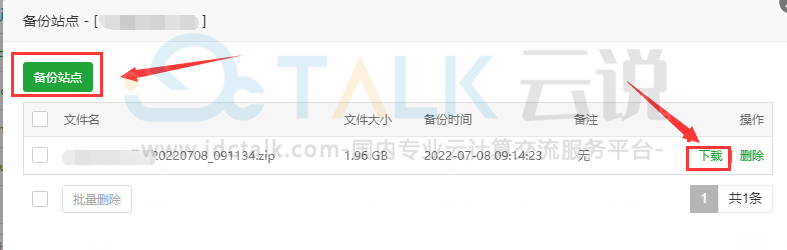 注意:网站数据越大备份所需要时间越长,执行备份后耐心等待。