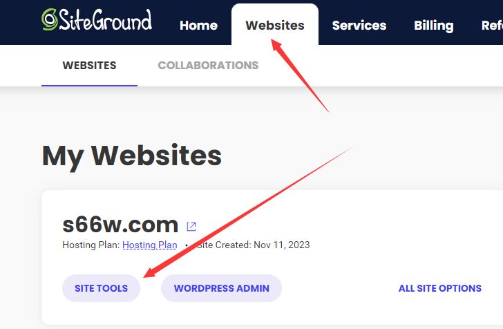 点击上面新创建的站点,下面的SITE TOOS按钮,进入站长管理界面;