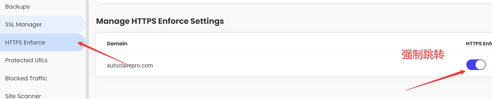 点击HTTPS ENFORCE 选项,把强制跳转的按钮打开即可。