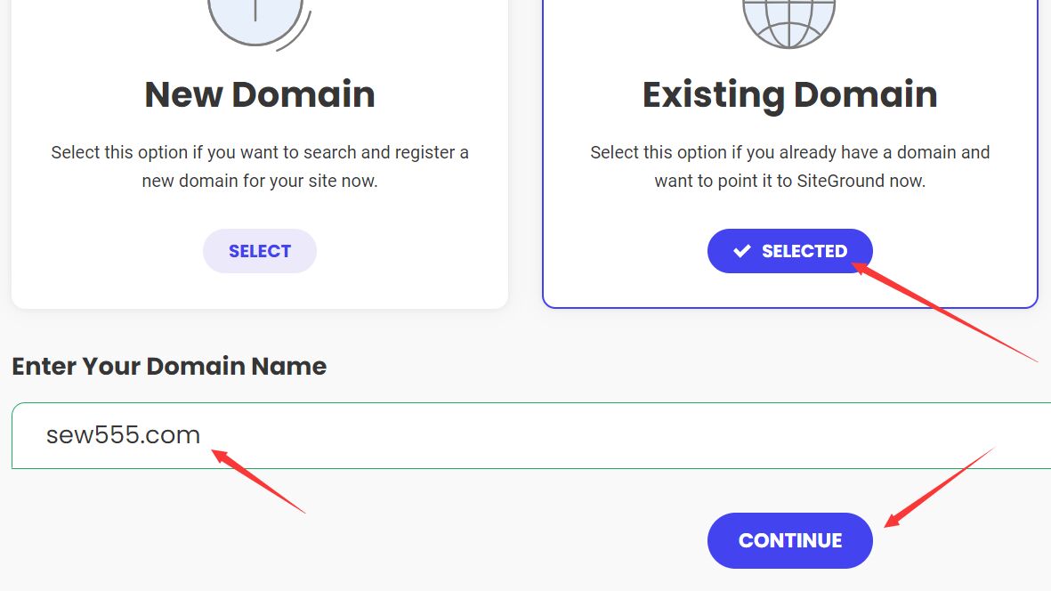点击“EXISTING DOMAIN” 并填写你自己的域名;