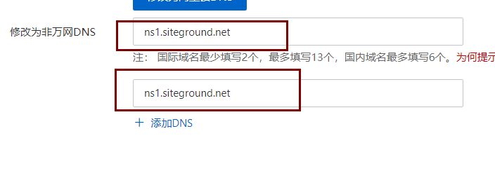 然后将DNS修改为SITEGROUND 主机的DNS地址: