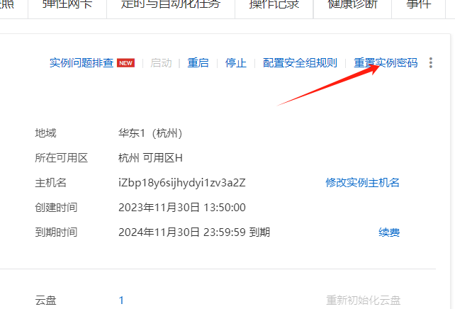 远程登录时,需要填写实例的密码,如果没有密码,可以重置密码。