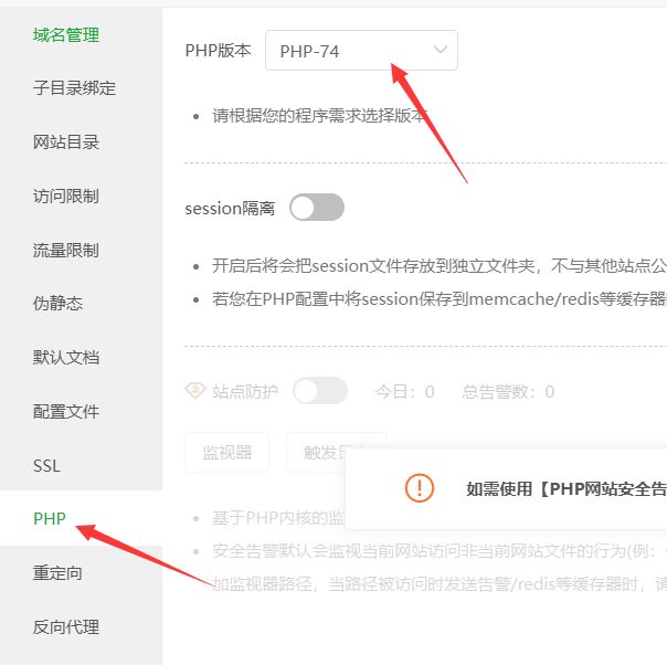 宝塔面板怎么修改网站的PHP版本 在制作网站过程中,使用的网站程序有时是需要对应的网站PHP版本才可以正常使用的。如果我们是使用的宝塔面板,应该怎么更换网站的PHP版本呢? 下面学做网站论坛就来介绍一下宝塔面板修改网站的PHP版本的方法。 首先我们要安装自己需要的PHP版本。 进入宝塔后台---软件商店-----选择自己要的PHP版本进行安装; 其次点击后台---网站----选择自己的站点,点击【设置】; 最后在设置页面,点击PHP,选择PHP版本为自己需要的版本即可。 上一篇: 阿里云虚拟主机怎么修改PHP版本和上传限制 下一篇: PHP获取IP地址并自动查询IP归属地
