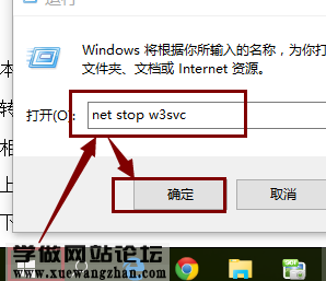 第一步:点击自己电脑的左下角图标,然后选择“运行”选项,并在运行框中输入以下二行命令,作用为停止IIS服务器运行。