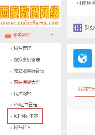 第一步:进入自己的网站主机管理后台,点击左侧菜单的ICP备案;
