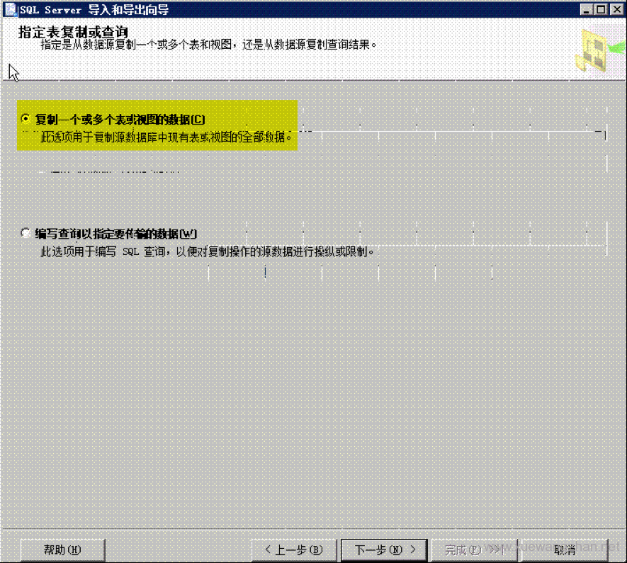 18. 选第一项 复制一个或多个表或视图的数据 ,单击 下一步。