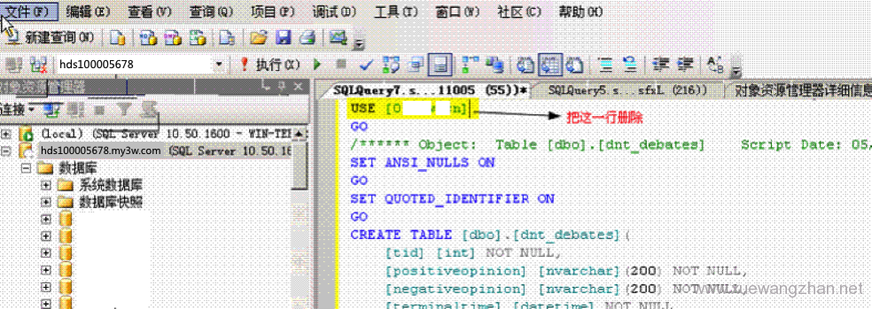 11. 把 本机窗口 的SQL脚本全选复制到 远程窗口 上,再把第一行删除。