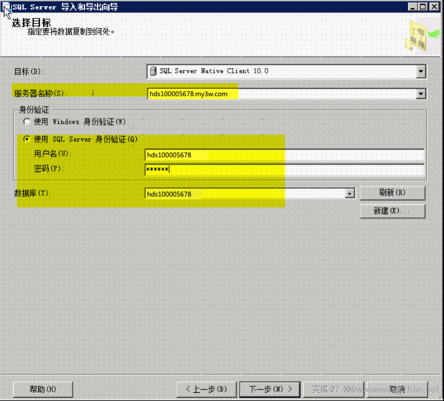 例如:购买的主机MSSQL数据库的远程服务器信息是这样的:
