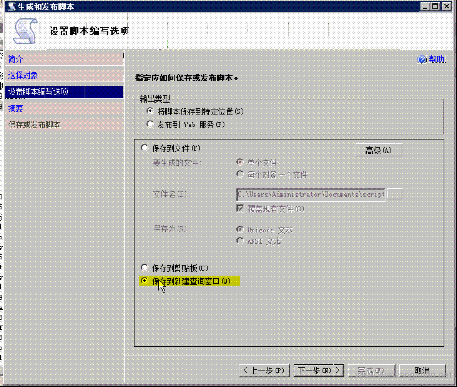 4. 单击 下一步 后,选择 保存到新建查询窗口 。