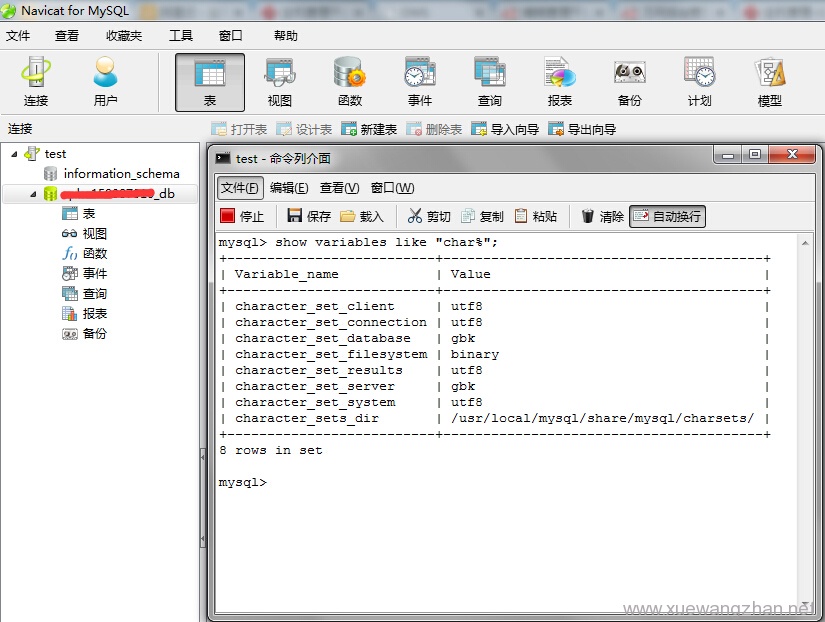 查看mysql的字符集:show variables where Variable_name like '%char%';