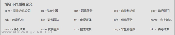 由于域名类型的不同,域名有很多种后缀。有英文的、符合中国网民输入习惯的中文域名等。