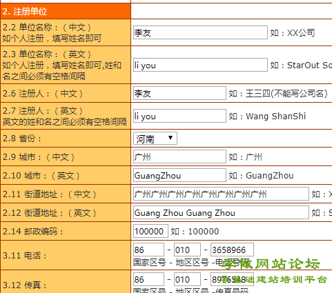 - 注册网站用户名,然后填写域名的注册信息,这些信息必须真实。