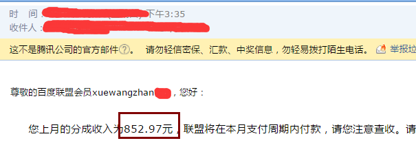 - 网站广告费用达到付款标准后,百度会发送相关的付款信息到你的邮箱里,提醒你百度正在付款给你,并且付款的金额是多少等。