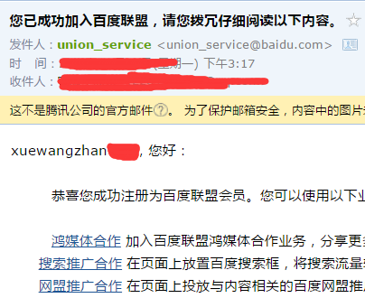 - 当邮箱里收到以下的信息,那恭喜你,你制作的网站已经成为百度联盟的一员了。