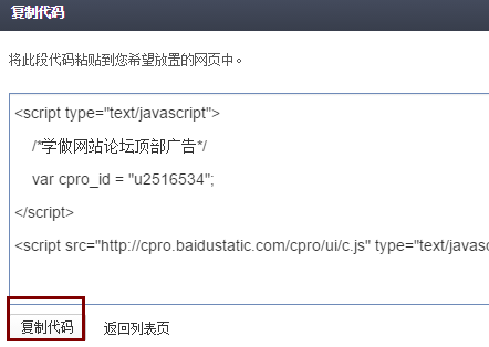 - 我们可以根据自己网站的需要设置多个广告位,方法是一样的。得到广告代码后,就是如何将广告代码放到自己的网站上面了。