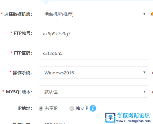第三步:填写自己空间的FTP用户名和密码,可以随便填,也可以是你自己登录网站的用户名和密码;再选择购买的年限(1年-5年),然后点击“马上实时开通”;