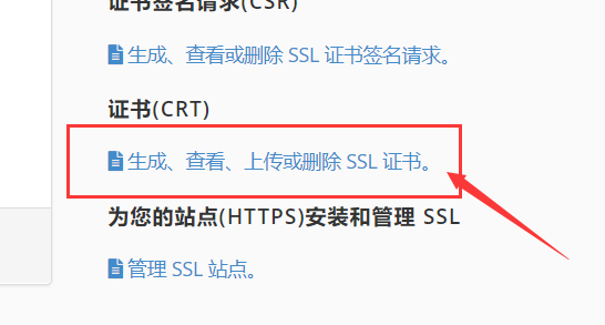 第二步:点击“生成、查看、上传或删除SSL证书”;