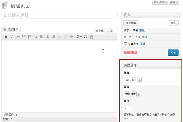 页面发布界面和文章发布页基本一样,请阅读《wordpress网站如何发布文章》