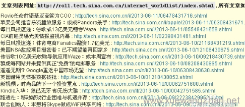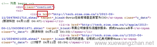 - 使用CSS选择器进行匹配。使用CSS选择器进行匹配,我们只需要设置文章网址的CSS选择器即可,通过查看列表网址http://roll.tech.sina.com.cn/internet_worldlist/index.shtml的源代码即可轻松设置,找到列表网址下文章超链接的代码,如下所示: