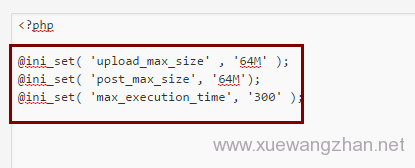 @ini_set( 'max_execution_time', '300' ); - 这样wordpress文件上传的大小限制就被改为64M,你也可以按照自己的需要修改里的数值。