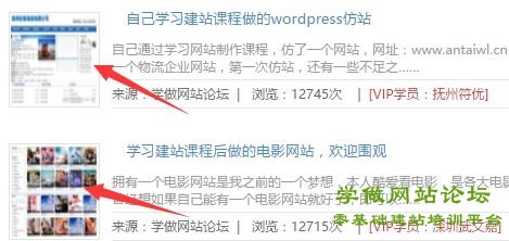 在学建网站过程中,很多时候需要在网站上显示文章的缩略图,这样可以让整个网站不是太单调。就是学做网站论坛的“学员网站制作案例”版块,就使用了缩略图。