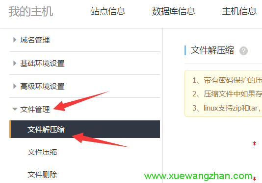 - 进入空间管理后台,文章管理-解压缩-选择上一步上传的wordpress.zip,解压到根目录下;