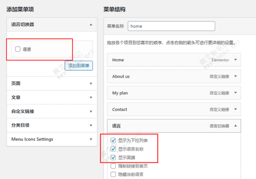 第三步:插件安装好之后,就是给自己的网站前台添加多语言切换按钮了。添加多语言切换按钮有二种方法。
